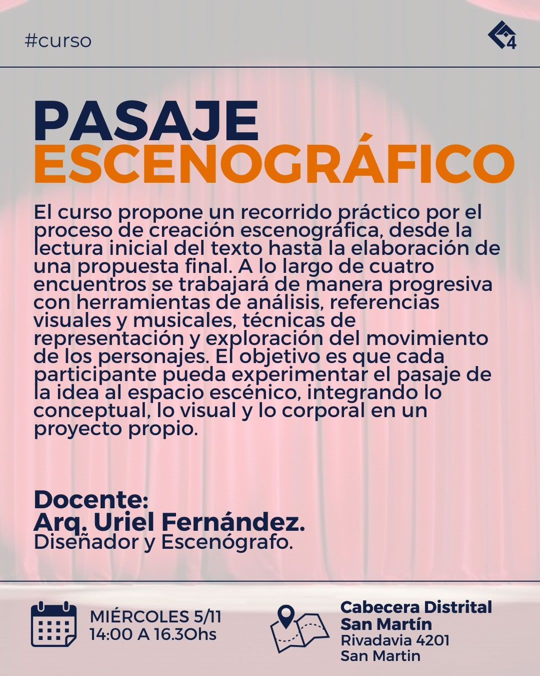 El curso propone un recorrido práctico por el proceso de creación escenográfica, desde la lectura inicial del texto hasta la elaboración de una propuesta final.