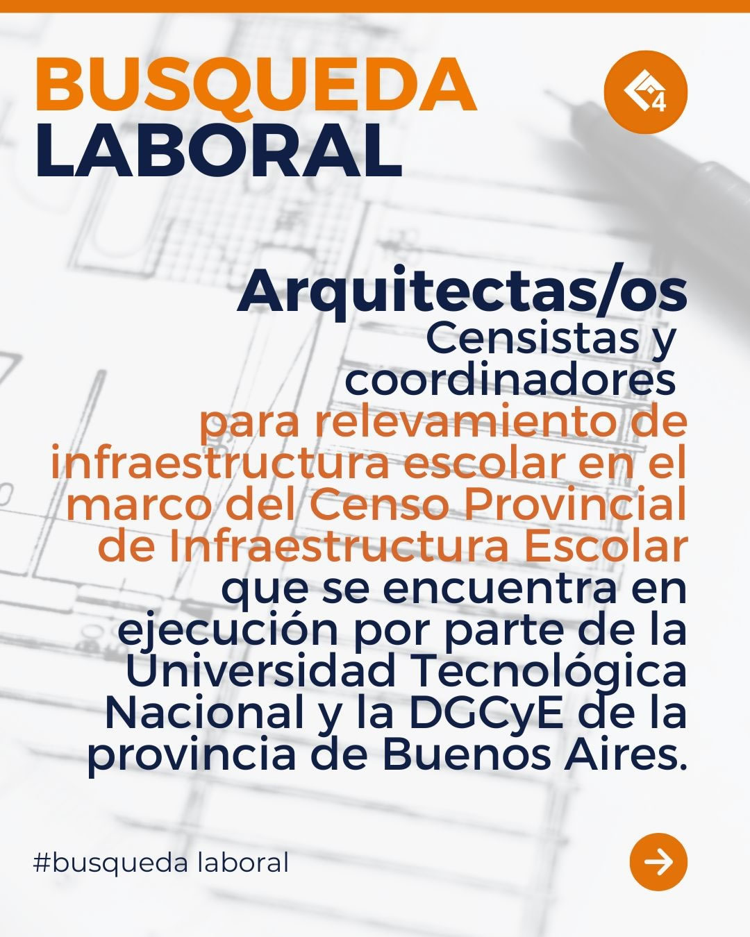 Se buscan censistas y coordinadores para realizar un relevamiento de infraestructura escolar en el marco del Censo Provincial de Infraestructura Escolar que se encuentra en ejecución por parte de la Universidad Tecnológica Nacional y la DGCyE de la provincia de Buenos Aires.